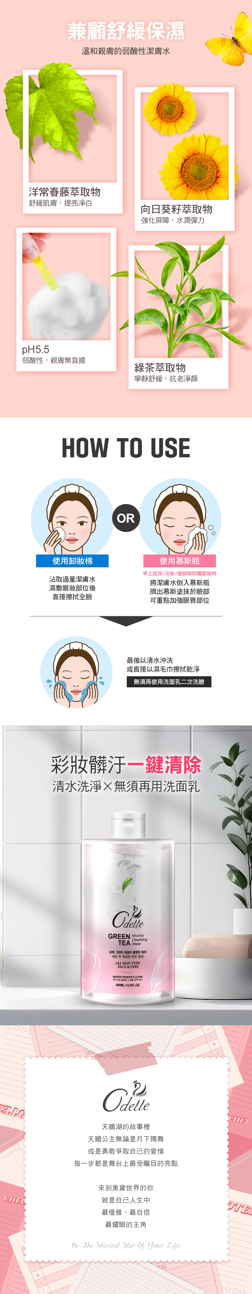 【Odette奧黛】綠茶淨萃潔膚水400mlX2罐_潔膚水效期:2026/5/16